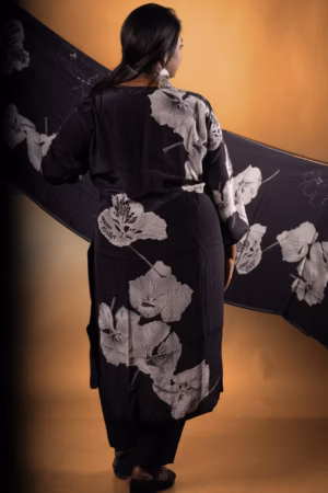 Silhouette: The kurta has a comfortable straight-cut silhouette, offering a relaxed yet smart fit that drapes well. Its length appears to fall around the mid-calf.